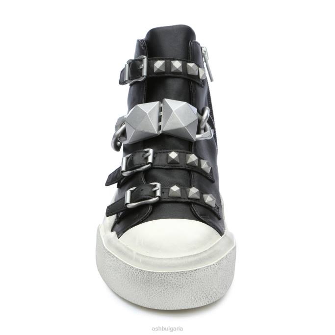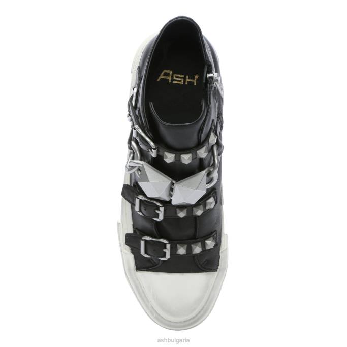 маратонки от гладка кожа създават мото настроение с големи шипове и декоративни катарами в ретро силует с висока горна част.